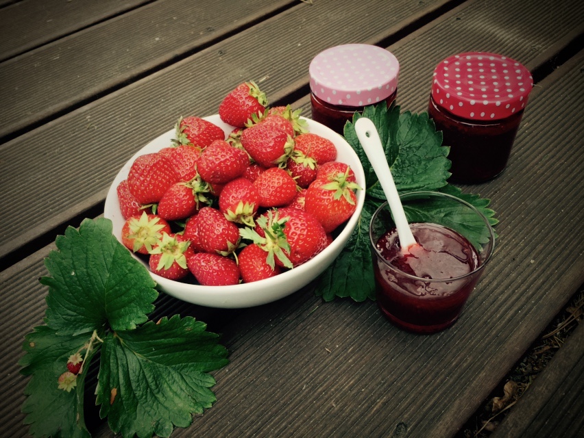 Marmeladen selber machen ist ganz einfach und geht sehr schnell. Das tolle ist, man weiß genau was drin ist. Nach dem Holunderblütengelee gibt es nun eine Erbeermarmelde mit Vanille. Normalerweise beliefert mich meine Mutter mit ihren Marmeladenkreationen, aber durch die Entfernung Bochum – Berlin ist der Nachschub etwas stockend. Da meine Marmeladenvorräte aufgebraucht sind, stelle ich mich selber an den Herd. Meine Mutter gehört schon zur Königsklasse der Marmeladenhersteller. Sie mixt  verschiedene Früchte oder Fruchtsäfte miteinander, arbeit mit verschiedenen Zuckersorten. Ich halte es da doch noch ganz einfach und konzentriere mich auf eine Frucht und auf einen Gelierzucker 2 :1.