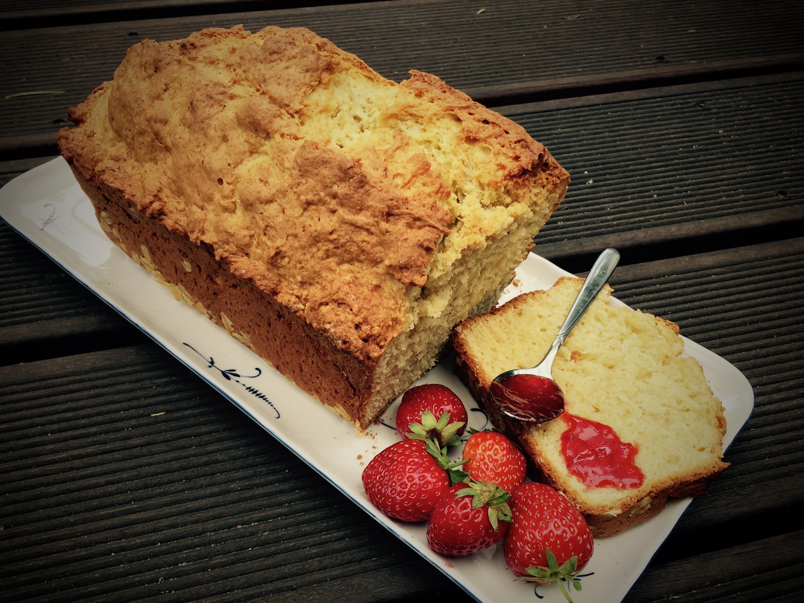 Omas Quarkkuchen mit Erdbeermarmelade