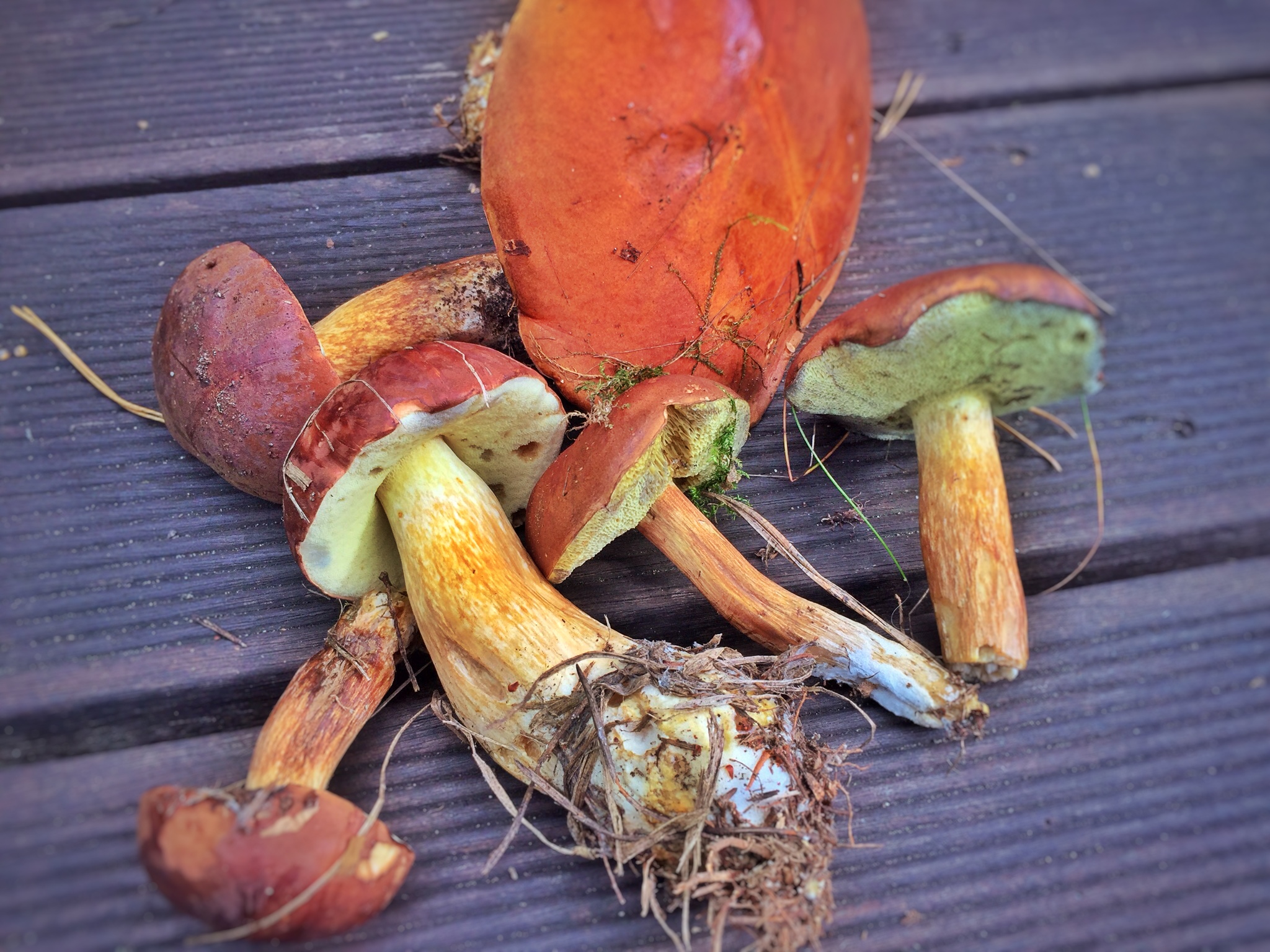 Wenn der Zwiebelkuchen im Ofen ist, ist es Zeit die Pilze anzuschmoren. Wir haben Maronen und Steinpilze gesammelt.