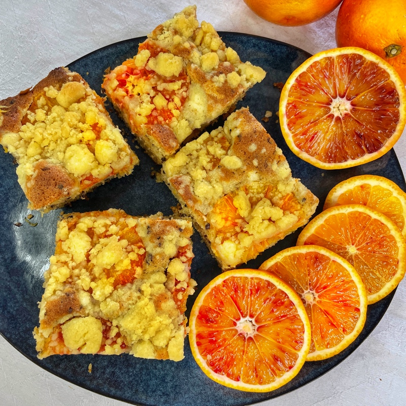 Mediterraner Streuselkuchen mit der leichten Bitternote der Blutorange.