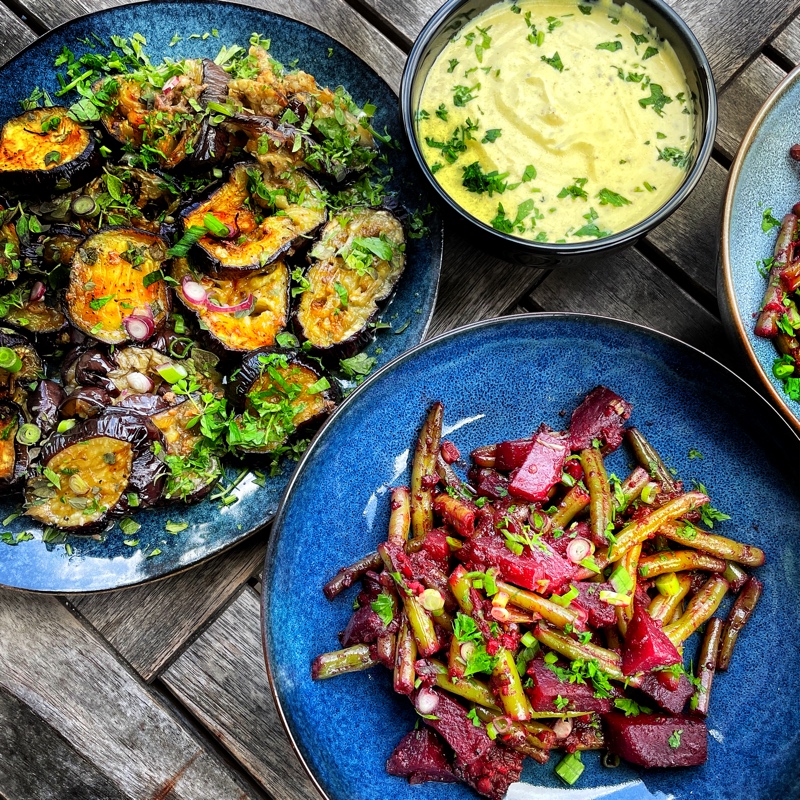 Als frische Komponente zum Rote Bete – Bohnengemüse passt eine Joghurtsoße.