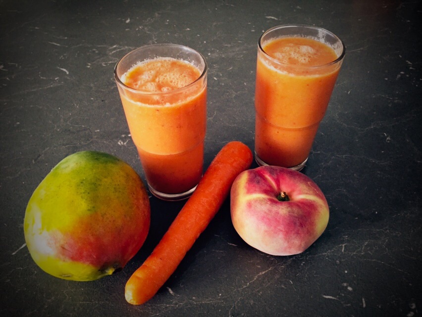 1. 500 ml Wasser, 4 Erdbeeren – vierteln, 1 halber Pfirsich (in kleine Stücke schneiden), 1 Zweig Zitronenverbene oder Zitronenmelisse