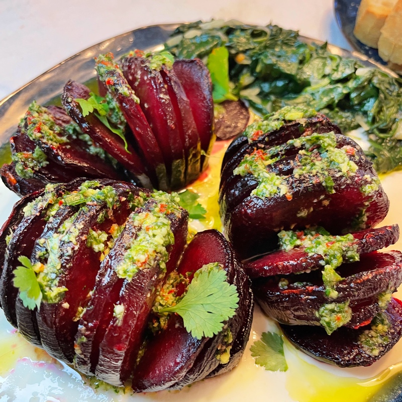 Anschließend können die „Rote Bete Lollis“ auf den Grill und werden von beiden Seiten gegrillt, bis ein deutliches Grillmuster zu sehen ist und sich Röstaromen bilden. Das geht recht schnell.