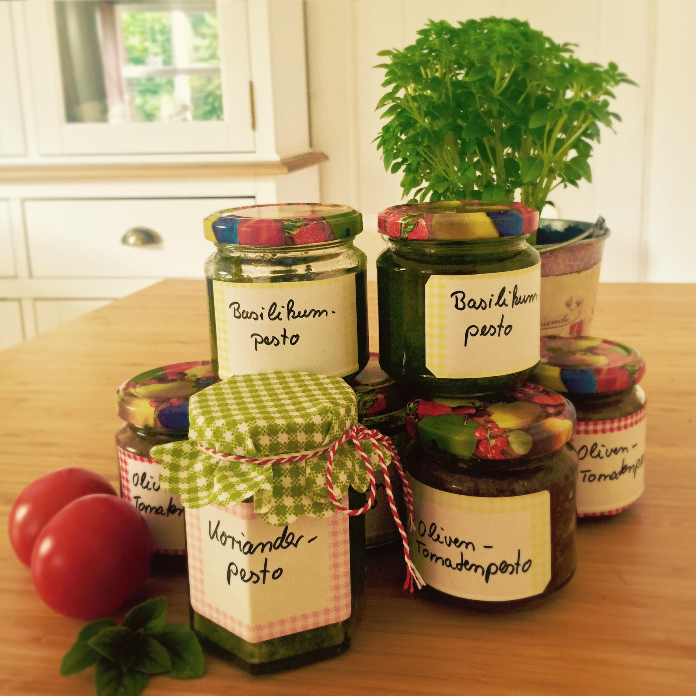 Zum Schluss noch einmal mit den flüssigen Zutaten aufschlagen und in die Gläser füllen.
